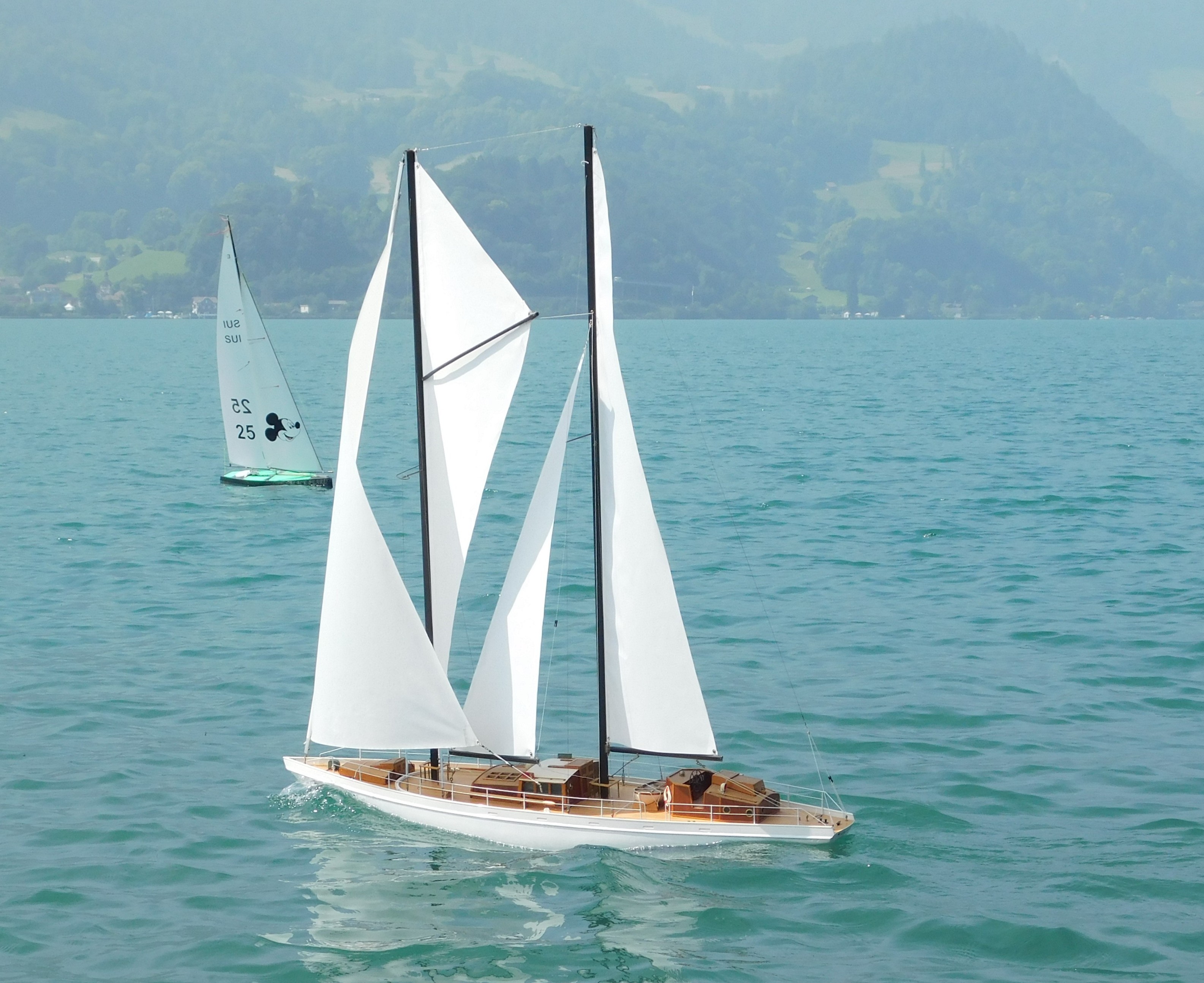 RC-Funktionen: Ruder, Motor, Motor ausfahren, Segelwinde für Genua, Winde Rollreffanalge, Segelwinde für restliche Segel