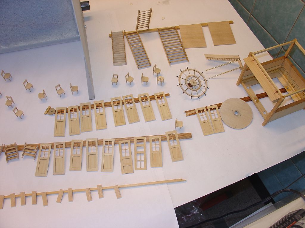 Ingesamt 245 Fenster mit vollständigem Fensterrahmen und Fensterkreuz sind gebaut. Dazu wurden 1660 Holzteile abgelängt und eingepasst.