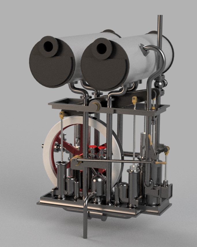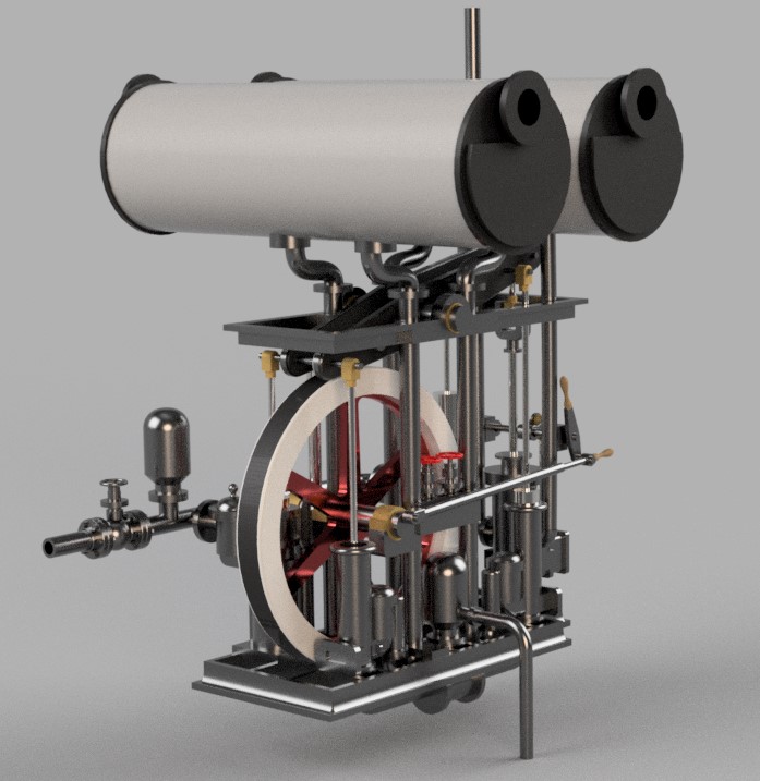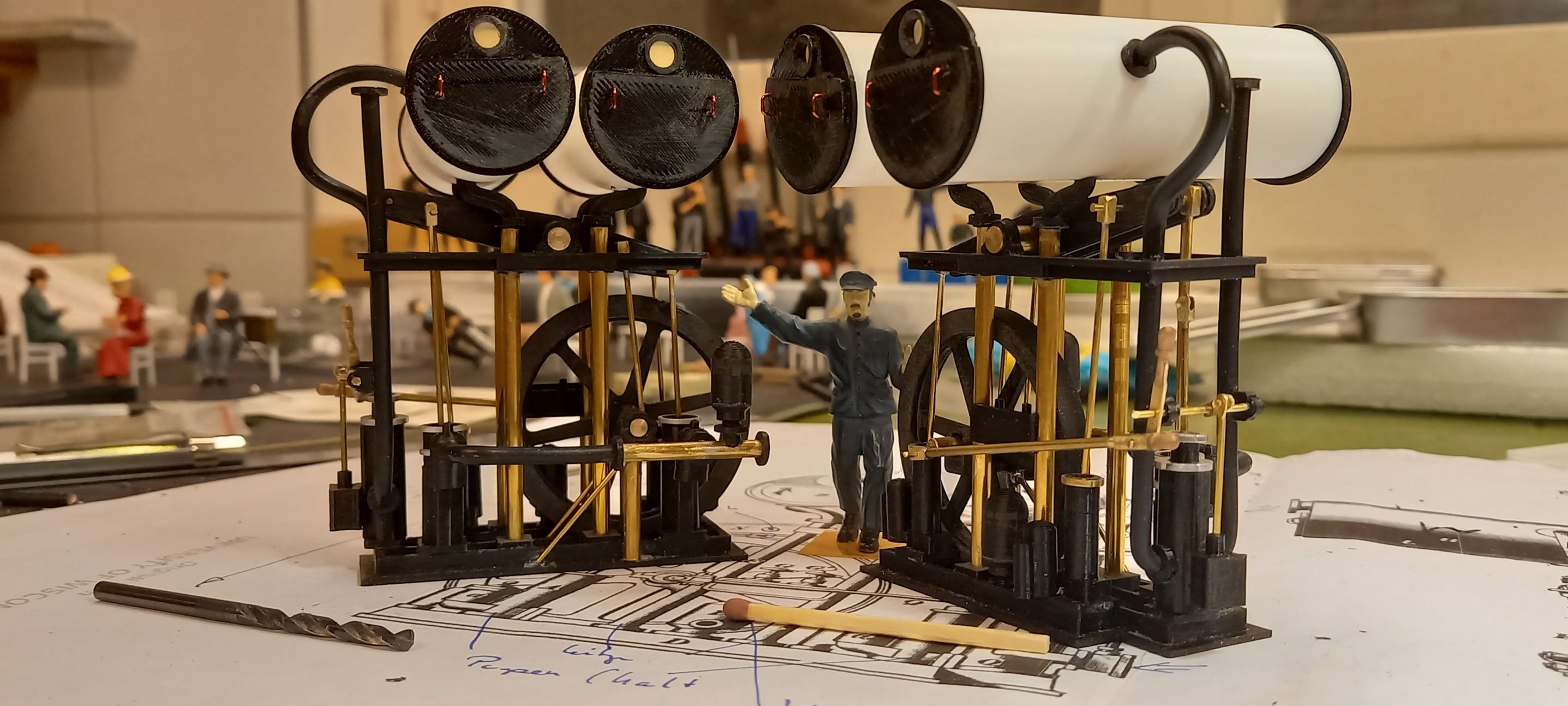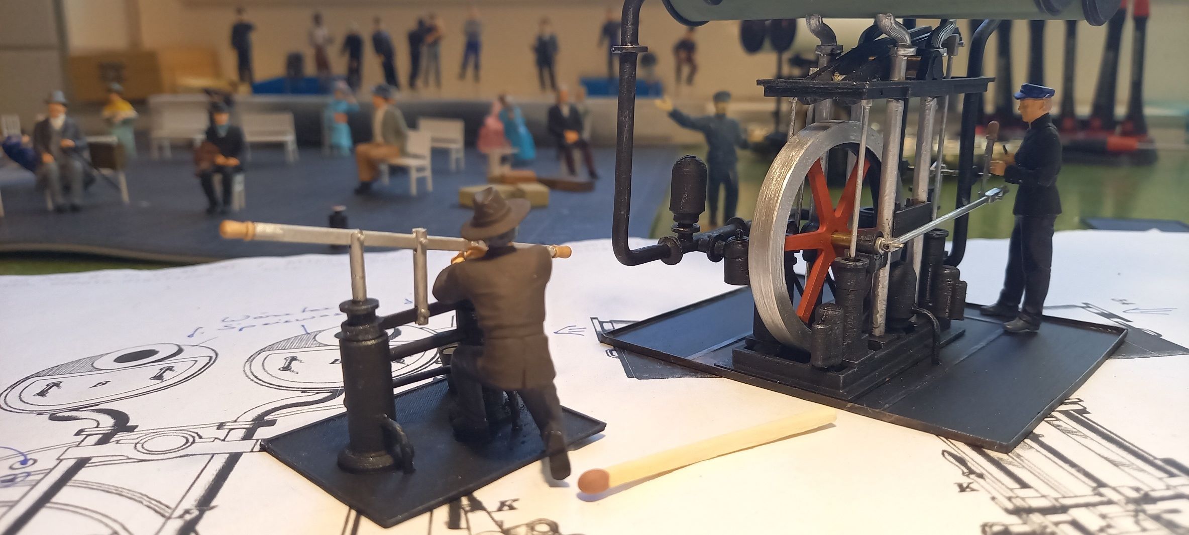 Die Konstruktion vom Doctor, der Speisewasserpumpe, mit zwei Wärmetauschern erfolgte im 3D CAD. Als Grundlage diente eine Skizze und eine Beschreibung aus einem antiquarisches Fachbuch von 1897. Der Bau als Modell vom Doctor erfolgt doppelt: Eingebaut ist das kleine Modell von aussen fast nicht sichtbar.