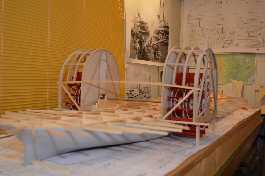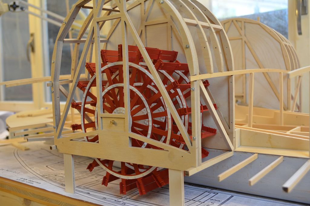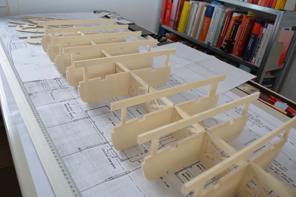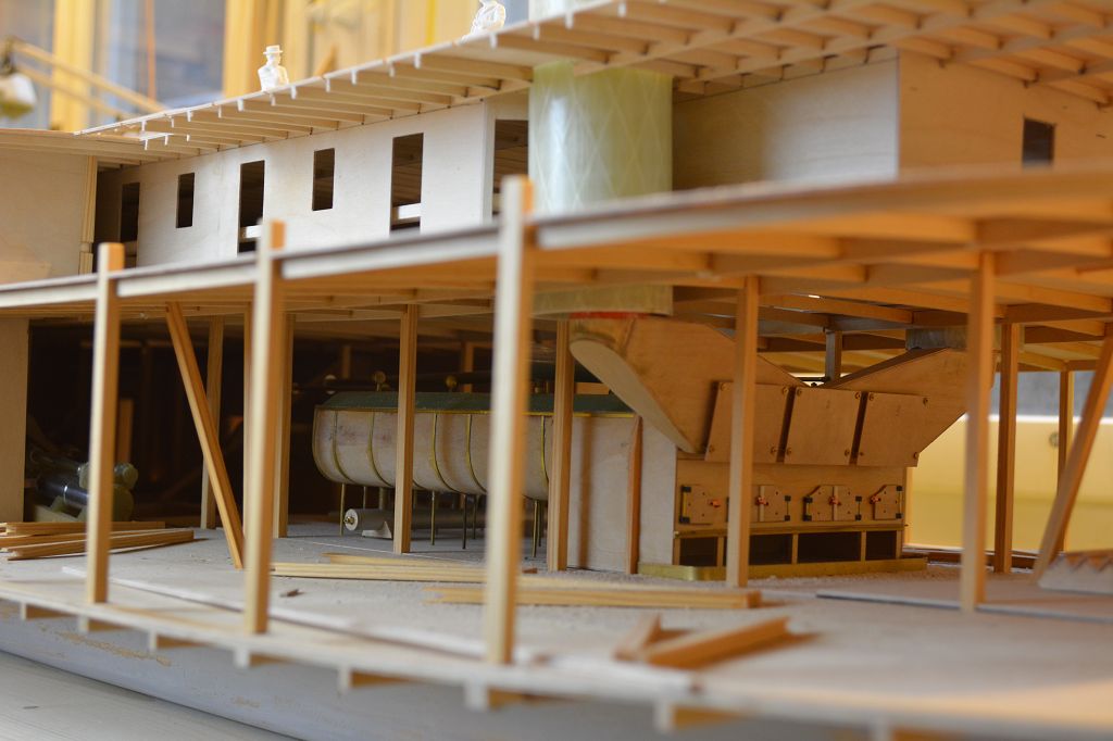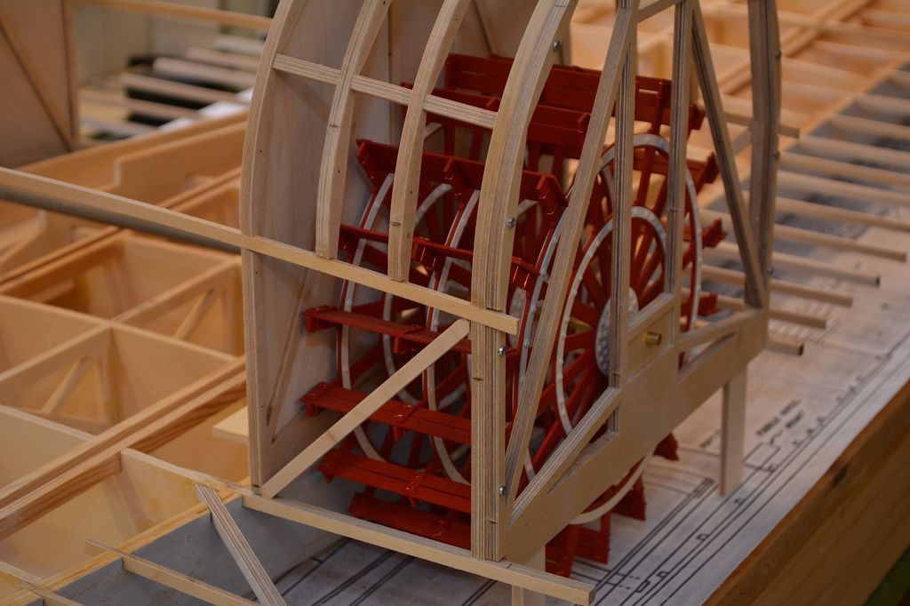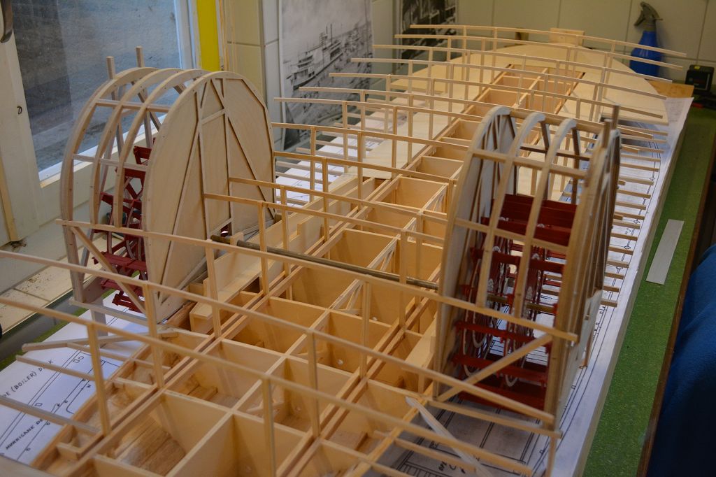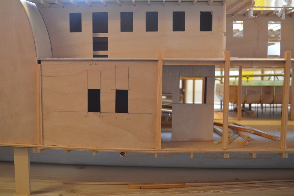 Die Bildergalerie zeigt am "kleinen Original" die Zimmermannsarbeiten und den Schiffsbau im Massstab 1:32. Die Bilder zeigen die Baustufen und den Baufortschritt seit 2010. Der Rumpf ist wie das Original mit Längsträgern konstruiert und gebaut. Andere Teile, wie die Unterkonstruktion der Decks, die Maschinenanlagen, Kessel, Verrohrung, Verstrebungen uvm. sind dem Original entsprechend nachempfunden, verschwinden aber beim Zusammenbau der Baugruppen und sind nach Fertigstellung nicht sichtbar.