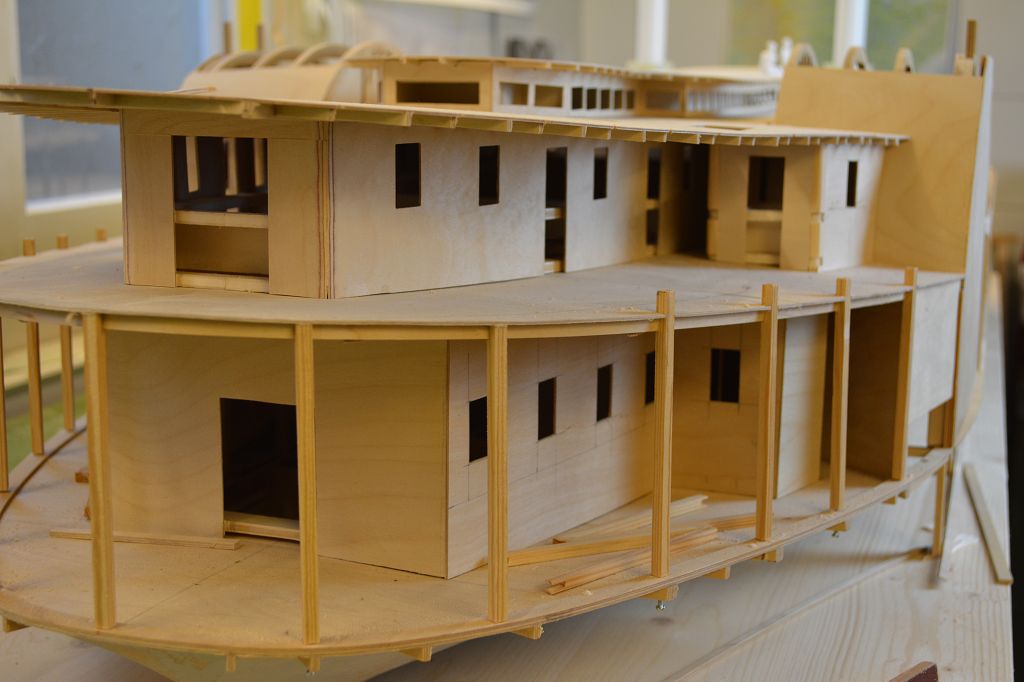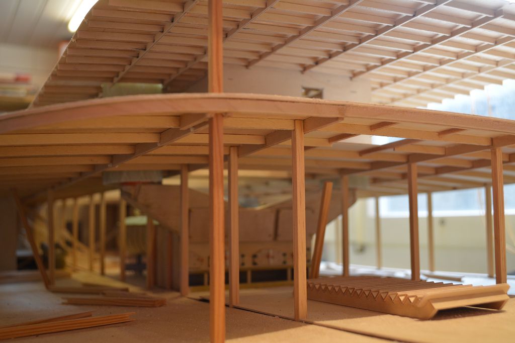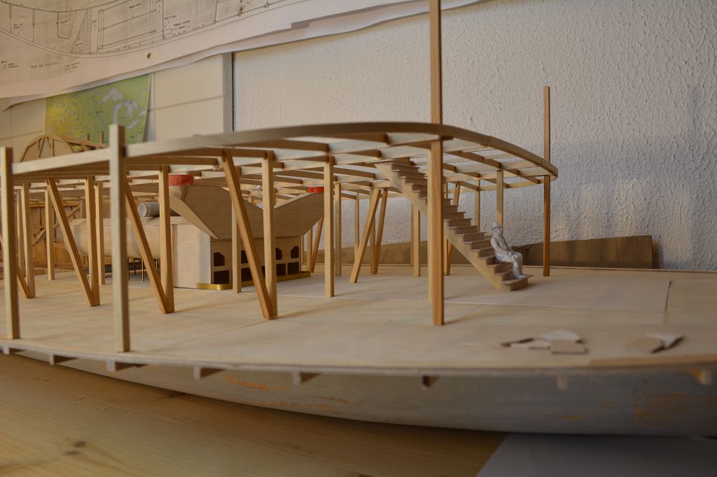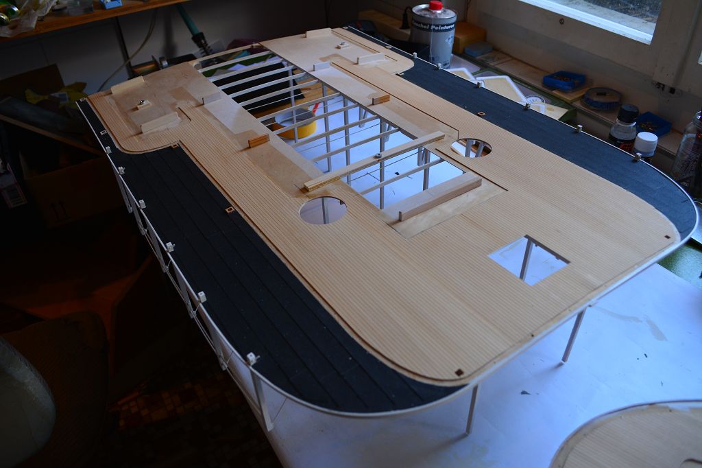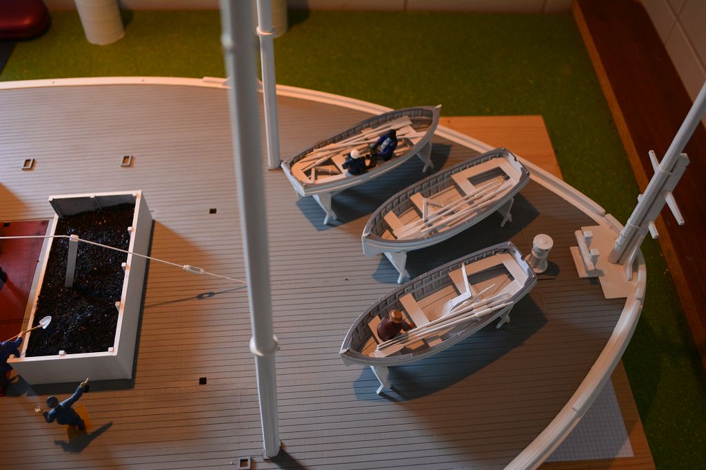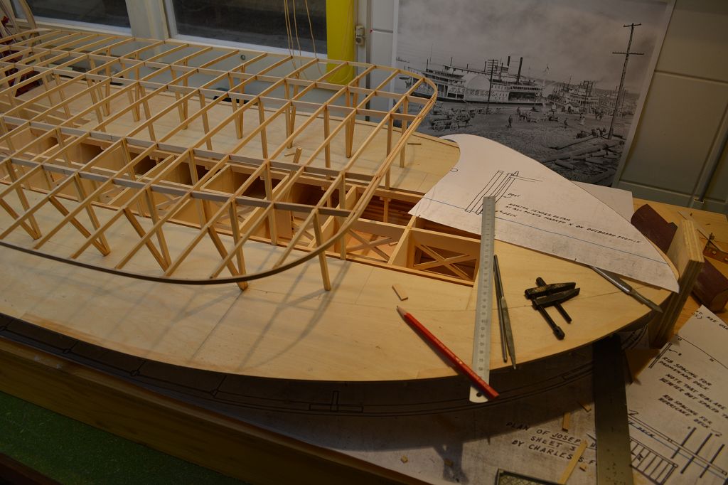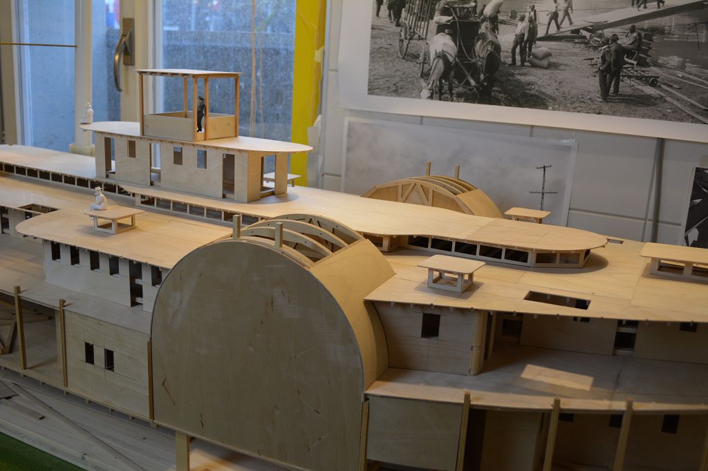 Die Bildergalerie zeigt am "kleinen Original" die Zimmermannsarbeiten und den Schiffsbau im Massstab 1:32. Die Bilder zeigen die Baustufen und den Baufortschritt seit 2010. Der Rumpf ist wie das Original mit Längsträgern konstruiert und gebaut. Andere Teile, wie die Unterkonstruktion der Decks, die Maschinenanlagen, Kessel, Verrohrung, Verstrebungen uvm. sind dem Original entsprechend nachempfunden, verschwinden aber beim Zusammenbau der Baugruppen und sind nach Fertigstellung nicht sichtbar.