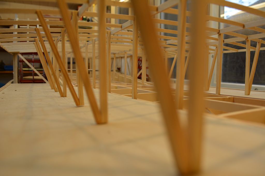 Erstellung der Bauunterlagen: Vergrösserung, Umrechnung (Inch und Foot ins metrische System!) und Erstellung der Modell-Konstruktion im Massstab 1:32