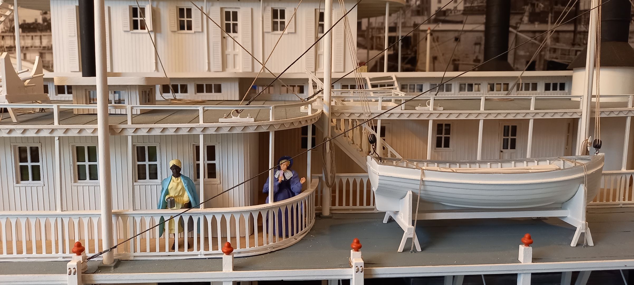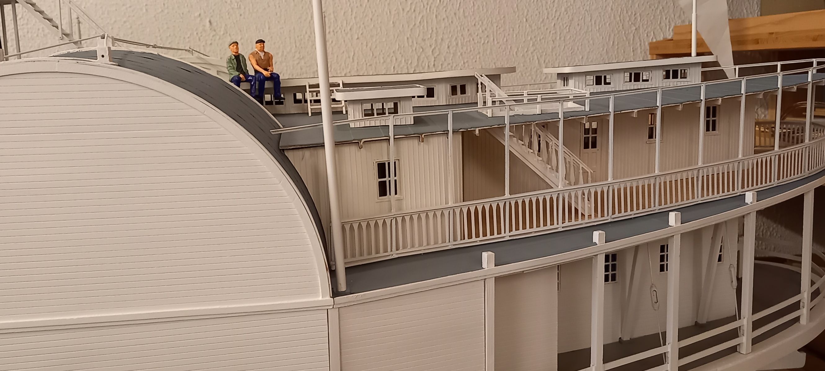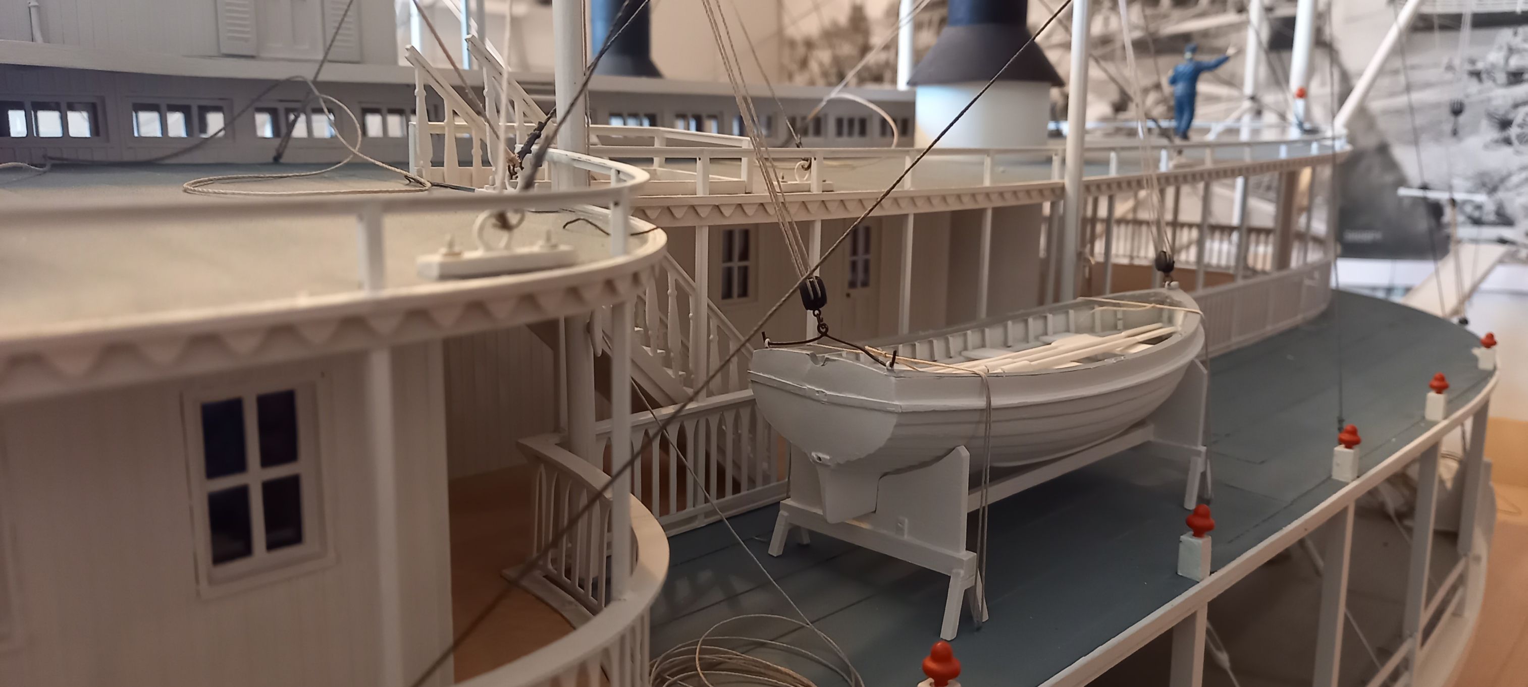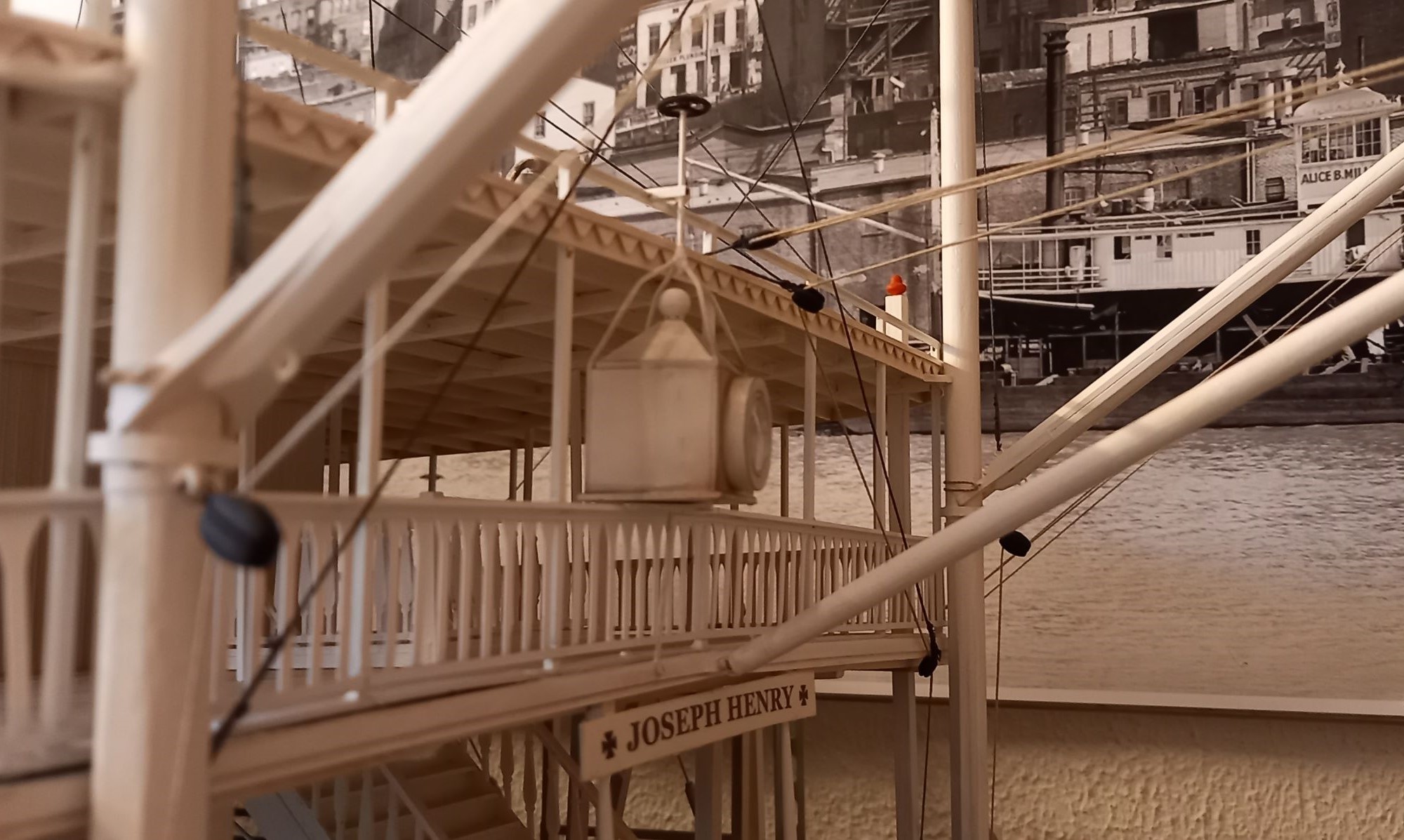 Das fertige Modell der Joseph Henry zeigt den Zustand unmittelbar bei der ersten Fahrt nach Werftüberholung mit geladenen Gästen.