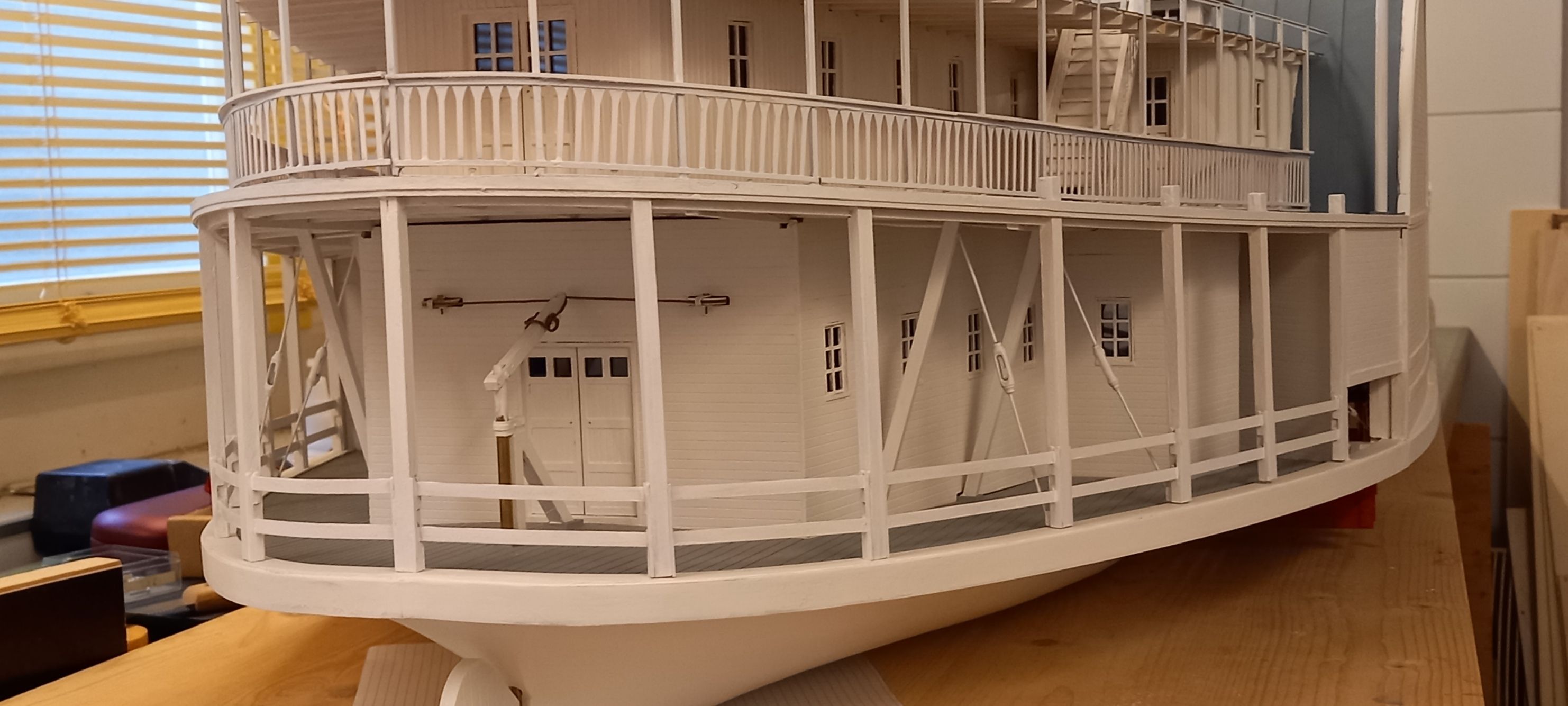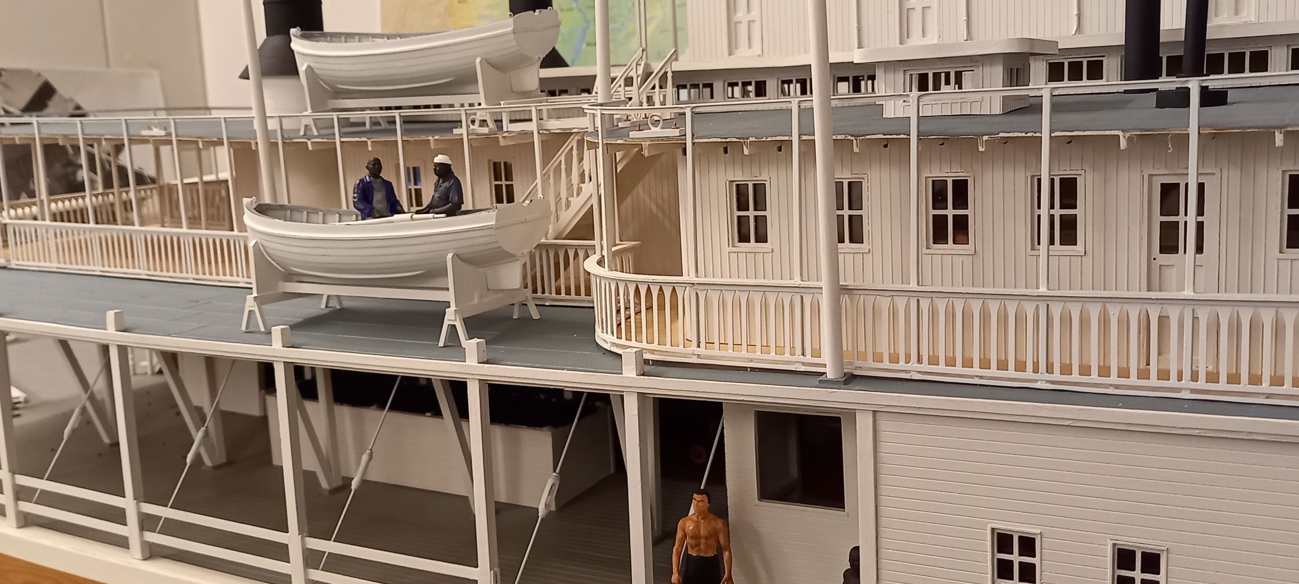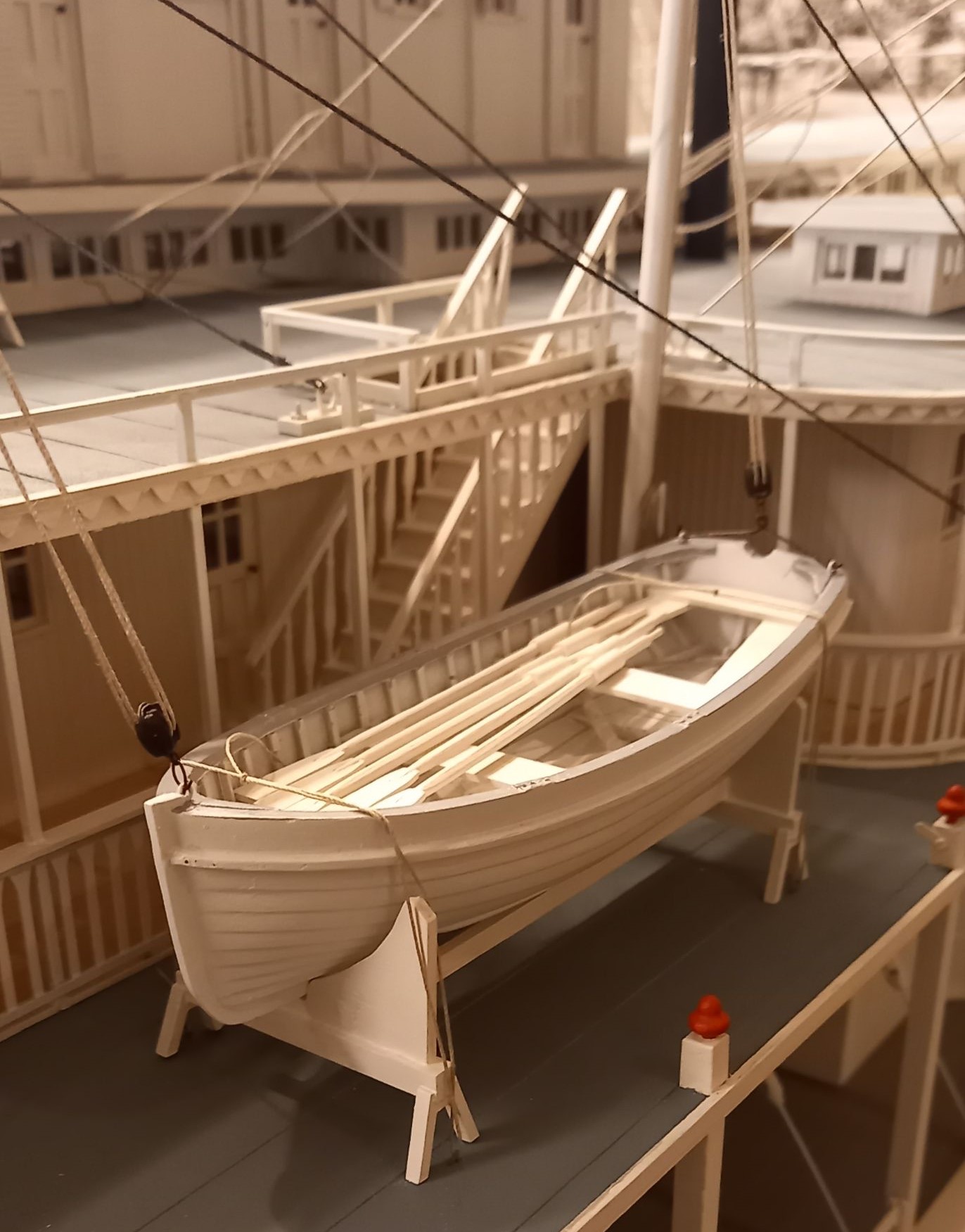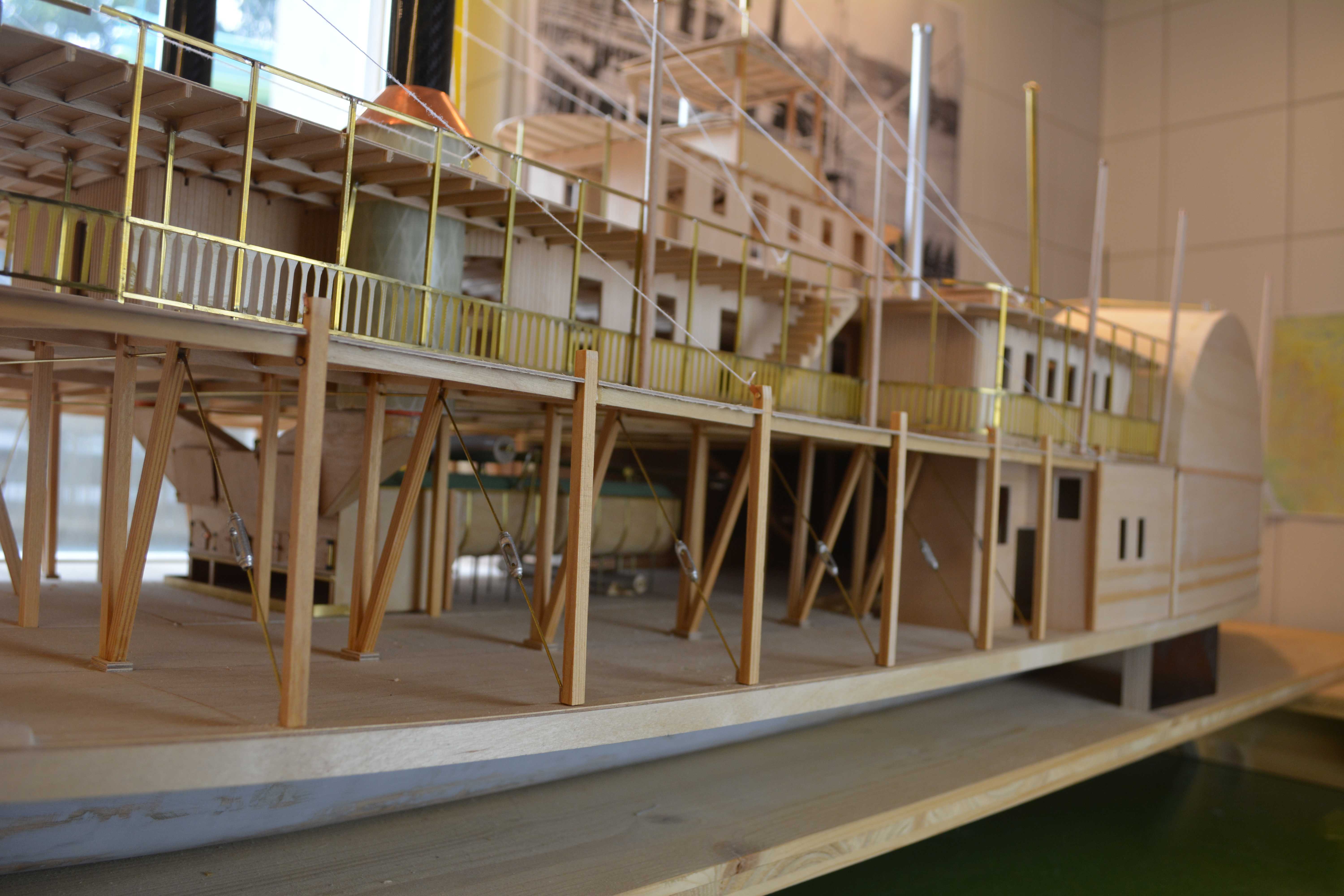 Das fertige Modell der Joseph Henry zeigt den Zustand unmittelbar bei der ersten Fahrt nach Werftüberholung mit geladenen Gästen.