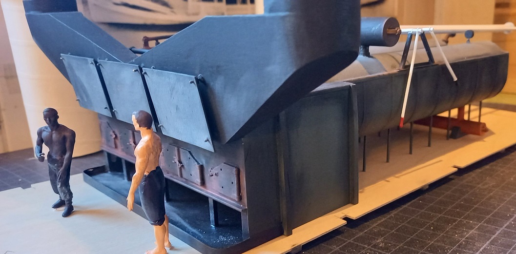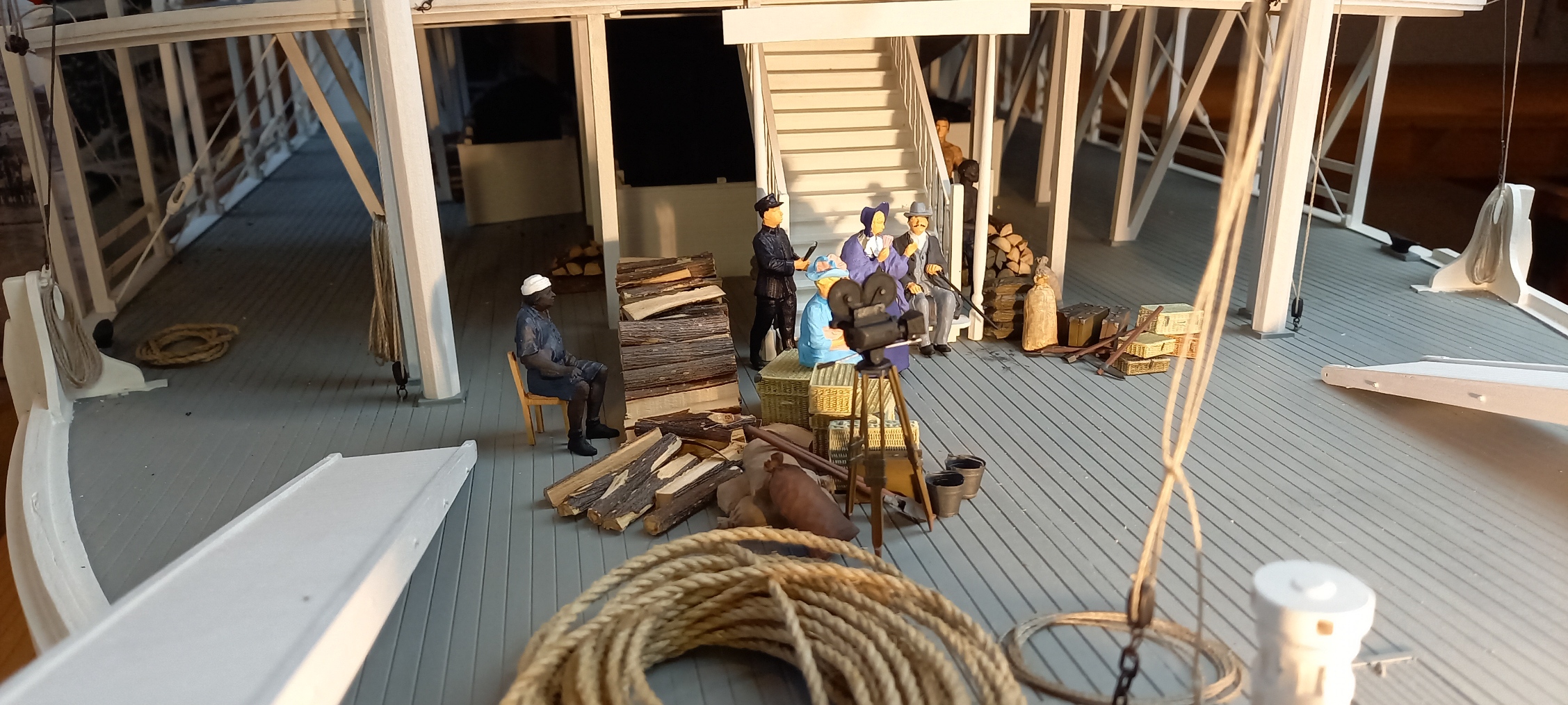 Zur Dokumentation dienen diese Bilder, als Zeitzeugen wurden bei der ersten Befeuerung der Kessel einige Gäste geladen. Die herumsitzenden Zimmerleute und Arbeiter werden später als Deckhand anheuern und den Fahrbetrieb übernehmen!