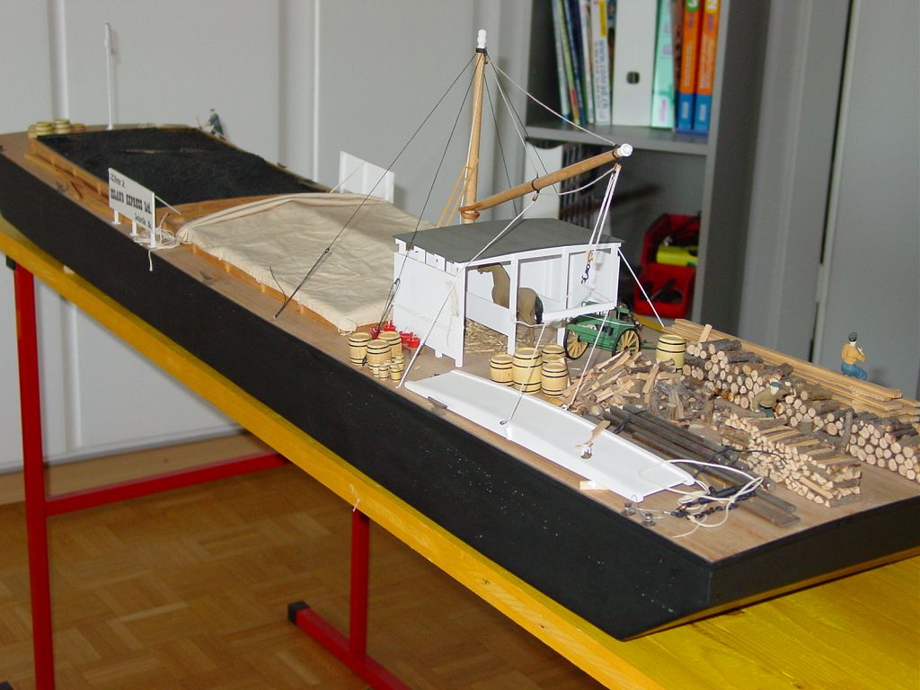 Als Vorlage dienten zahlreiche Bilder. Die Barge zeigt den Transport unterschiedlicher Materialen wie Brennholz, Kohle, Bauholz, Pferd mit Wagen und Fässer. Die River Barge wird der Valley Belle zum Schubverband vorgespannt. Zusammen ergibt sich eine Modelllänge von 2.55 m mit einer Gesamtmasse von 33kg.