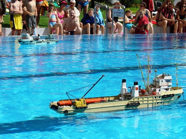 Beide Bilder entstanden bei einer Vorführung im Burgerbad in Leukerbad (2004) zusammen mit dem Schwesterschiff MS Rembertiturm von Bruno Howald.